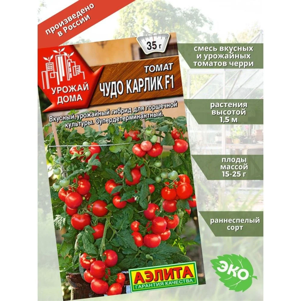 Ультраранний гибрид для украшения солнечного балкона, подоконника или террасы. Высота взрослого куста не превышает 20-25 см. Первый урожай снимают через 85-90 дней после всходов.Растения супердетерминантные, компактные, штамбовые, сильнооблиственные. Плоды собраны в простые кисти по 5-7 шт в каждой. Коренастые кустики буквально усыпаны ярко-красными томатами массой 30-35 г на протяжении всего сезона. Плоды очень сладкие, сочные и ароматные. Томат прекрасно подходит для приготовления свежих салатов и цельноплодного консервирования.Урожайность 1-1,2 кг с одного растения.Растения не нуждаются в подвязке и пасынковании. Гибрид можно выращивать в открытом грунте и теплицах в качестве уплотнителя высокорослых томатов. Гибрид имеет хороший иммунитет к болезням томата. В комнатных условиях плодоносит даже в зимнее время (с подсветкой).