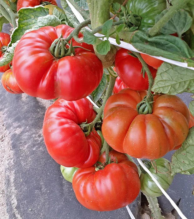 Томат-шедевр! Круглые красные плоды-биф с характерными ребрами, со средней массой 200-300 г. Абсолютно «южного» вида и вкуса! Их можно не разрезать, а просто разламывать руками, любоваться сахарной мякотью и наслаждаться ее вкусом. Мощное индетерминантное растение дает не менее 20 плодов. При нормировании урожая можно добиться увеличения массы плода до 1 кг! Важная особенность – стабильная урожайность даже в неблагоприятное лето. Суперплоды подойдут для самых вкусных и полезных салатов и нарезки, домашних соков и соусов. Такие плоды отлично подходят для фарширования и приготовления сэндвичей.