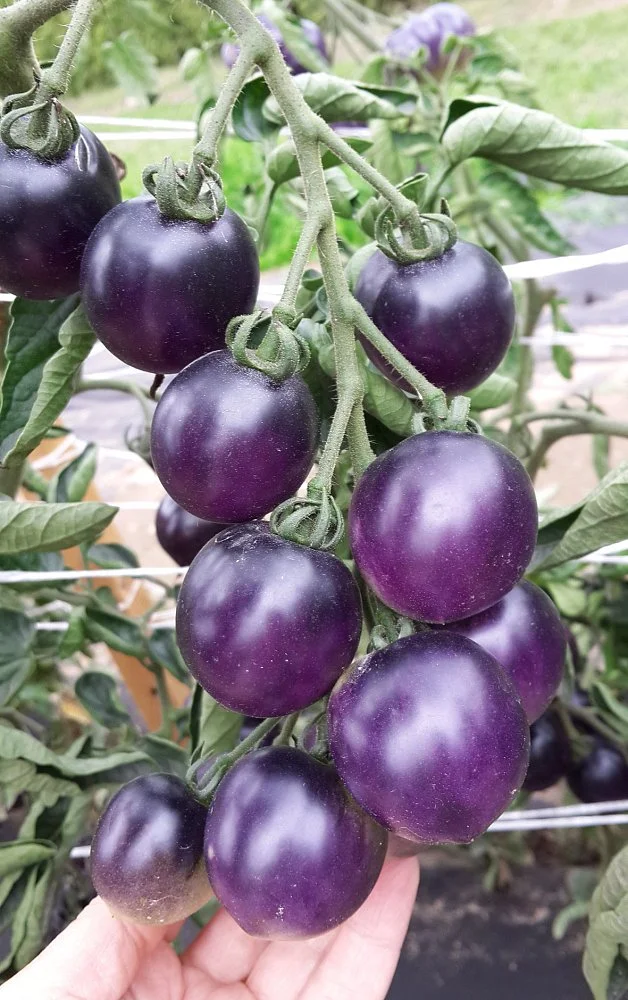 Ещё одна супер-новинка среди томатов необычной окраски - индетерминантный среднеранний гибрид с плодами, играющими на солнце всеми оттенками голубого и синего цвета!
