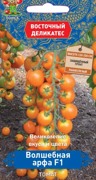 Высокоурожайный индетерминантный раннеспелый гибрид для защищенного грунта. Требует формирования и подвязки. Период от всходов до начала плодоношения 90-95 дней. Плод округлый массой 20-25 г, оранжевый, блестящий, плотный сладкий. Кисть красивая двусторонняя, плотная с 16-18 плодами. Пригоден для уборки целыми кистями. Устойчив к ВТМ, фузариозному увяданию, кладоспориозу, к стрессовым условиям. Рекомендуется для потребления в свежем виде и цельноплодного консервирования.