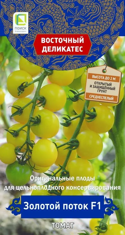 Высокоурожайный, индетерминантный, среднеспелый гибрид для защищенного и открытого грунта. Требует формирования и подвязки. Период от всходов до начала плодоношения 110-115 дней. Плод округлый, массой 40-50 г, ярко-желтый, блестящий, плотный. Мякоть плотная, сочная, кисло-сладкого вкуса. Кисть красивая, простая, плотная, с 9-13 плодами. Пригоден для уборки целыми кистями. Устойчив к ВТМ, фузариозному увяданию, очень пластичен, устойчив к перепаду температуры. Рекомендуется для потребления в свежем виде и цельноплодного консервирования.