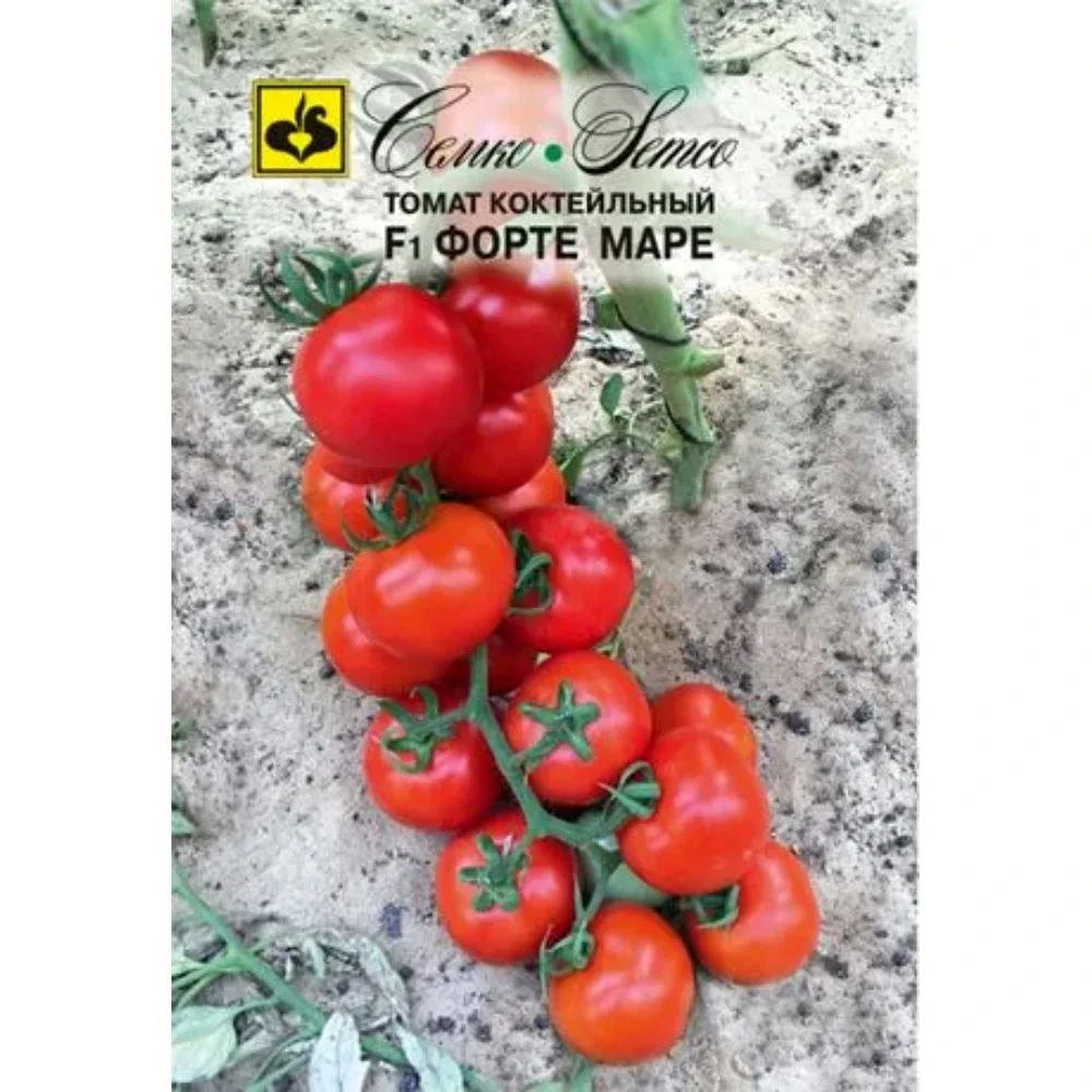 Томат Форте Маре F1 - раннеспелый коктейльный кистевой гибрид LSL-типа. От всходов до созревания плодов 90–95 дней. Растение среднеоблиственное. Формируют в один стебель. Первое соцветие формируется над 7–9 листом, последующие через 3 листа. В кисти, в среднем, завязывается 8–10 плодов. Плоды округлой формы, темно-красной окраски, двухкамерные, массой 40–60 граммов, плотные, гладкие.Собирают как кистями, так и отдельными плодами. Вкусовые и товарные качества помидоров отличные, сохраняются без их изменения в течение 40–45 дней. Гибрид устойчив к вирусу томатной мозаики (ToMV).Транспортабельность и лежкость хорошие.Используется для потребления в свежем виде и цельноплодного консервирования. Рекомендуется для выращивания во всех типах теплиц и в открытом грунте с подвязкой к опоре.Схема посадки 70х40 см. Урожайность свыше 14–15 кг/м2.