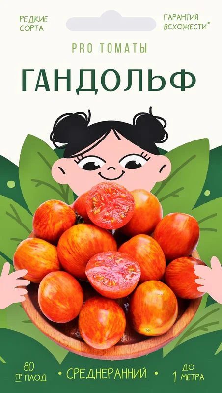 Особенность сорта: редкий очень красивый карликовый сорт из серии «Проект Гном Томатный» с полосатыми плодами-сердечками и вариегатными бело-зелеными листьями от селекционера Дина Слейтера, США. Пестролистная новинка на рынке! Описание: Томат Gandolf (англ.) - невысокий декоративный кустик с очень красивой картофельной листвой и яркими малиново-золотистыми плодами с носиками. Созревание в кистях дружное. Неприхотливый, выносливый. Плодоносит до поздней осени, подходит для ОГ и теплиц. При выращивании в ОГ куст будет чуть ниже. Мякоть медово-сладкая, маслянистая, густая, малосемянная, с освежающим сбалансированным вкусом. Плоды способны продолжительное время храниться без потери качества. Урожайность потрясающая! Устойчив к перепадам температур, болезням. Универсален в применении.