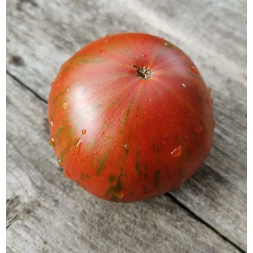 Шоколадная молния — это детерминантный сорт томата из серии Гном, который отличается крепкими стеблями. Этот сорт предназначен для выращивания в теплицах и имеет среднерослый тип куста, который может достигать 100 см в высоту.Плоды этого сорта очень крупные, массой от 150 до 250 граммов (в некоторых случаях до 350 г), плоскоокруглой формы. Они имеют шоколадный цвет и покрыты зеленоватыми и золотистыми штрихами-молниями. Мякоть томатов густо-малиновая, в ней очень мало семян. Томат этого сорта имеет интенсивно-сладкий вкус со слабой пряностью. В зависимости от условий выращивания он может быть как с небольшой кислинкой, так и без нее.