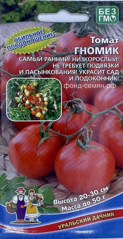 Самый ранний из всех сортов и гибридов томата для выращивания в открытом грунте, в вазонах, на подоконниках, на балконах и даже в зимних садах. Растение детерминантное, штамбовое, низкорослое, высотой 20-30 см. Плоды округлые, красные, массой до 50 г, сочные, сладкие, с насыщенным ароматом. Плодоношение и созревание плодов идёт непрерывно, начиная с июля и до самых заморозков. Рекомендуется использовать в свежем виде, в салатах и для цельноплодного консервирования.На рассаду семена высевают в марте - начале апреля, на глубину 1 см. Пикировка в фазе 1-2 настоящих листьев. Рассаду подкармливают 2-3 раза полным удобрением. За 7-10 дней перед высадкой рассаду начинают закалять. В теплицы 60-65 дневную рассаду высаживают в апреле-мае, в открытый грунт – в июне, после окончания весенних заморозков, в фазе 6-7 настоящих листьев и хотя бы одной цветочной кисти. Схема посадки: 30х50 см. Полив следует осуществлять после захода солнца только теплой водой. Подкормки рекомендуется проводить в течение всего периода вегетации.