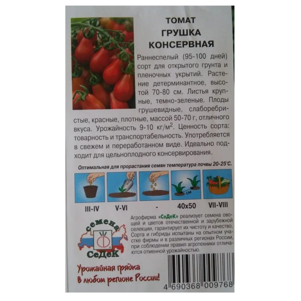 Раннеспелый (95-100 дней) сорт для открытого грунта и пленочных укрытий. Растение детерминантное, высотой 70-80 см. Листья крупные, темно-зеленые. Плоды цилиндрические, слаборебристые, красные, плотные, массой 50-70 г, отличного вкуса. Урожайность 9-10 кг/м². Ценность сорта: товарность и транспортабельность. Употребляется в свежем и переработанном виде. Идеально подходит для цельноплодного консервирования.