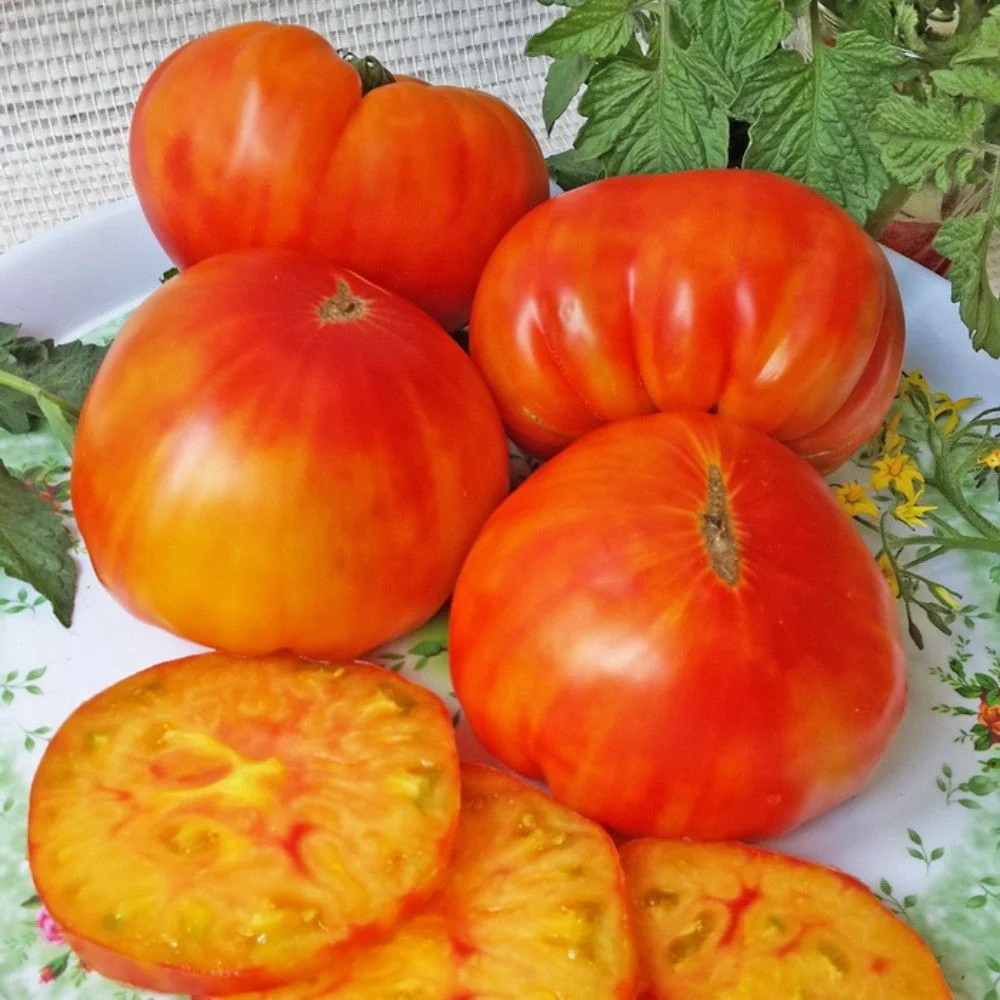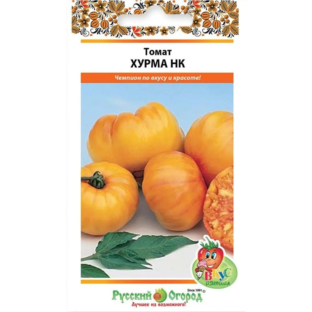 Овощеводам, имеющим некоторый опыт в профилактике заболеваний помидор и желающим вырастить новый необычный сорт, мы смело рекомендуем томат Хурма. Купить семена этой редкой разновидности нашей собственной селекции вы сможете, нажав кнопку «купить» или позвонив нам по телефону. Доставляем круглогодично. Название сорта обусловлено внешней схожестью с хурмой – зрелые плоды ребристы у плодоножки, приобретают яркий желтый цвет, похожую слегка приплюснутую форму и очень мясистые на разрезе, могут иметь до 8 камер внутри, ароматные! Изначально сладкие, в перезревшем виде приобретают пикантную кислинку. Сок из них очень полезен, богат каротинами и антиоксидантами, хотя назначение универсально. Средний вес помидора 200 г, но в хороших тепличных условиях может достигать и 400 г. Хорошо растет и в парнике, и на открытой гряде, требует подвязки. Особой устойчивостью к распространенным болезням вид не отличается, но это не недостаток, достаточно своевременной профилактики, как для большинства томатов.