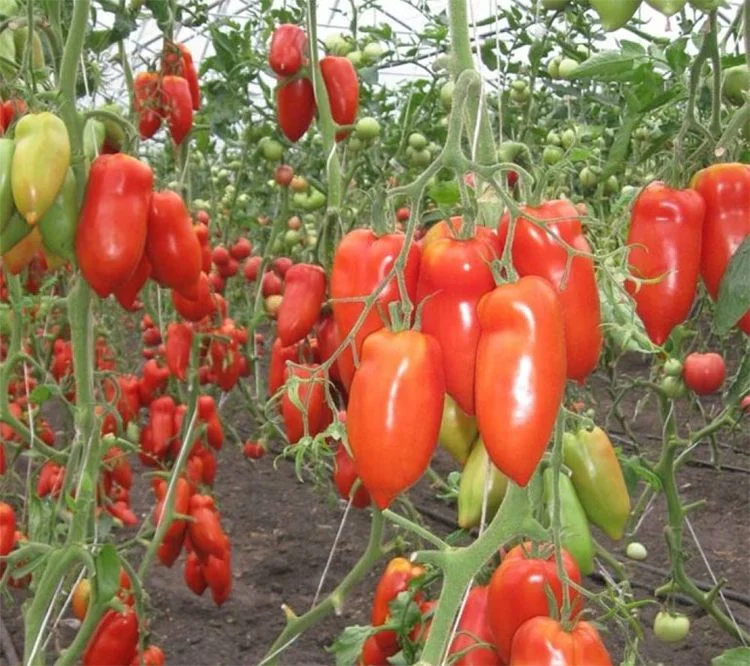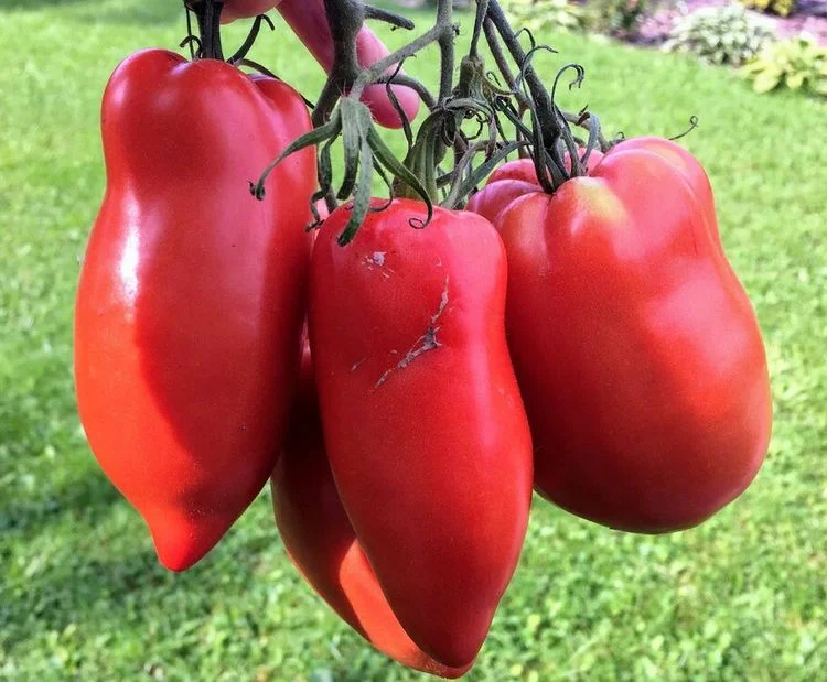 Раннеспелый (60 дней от высадки рассады до созревания), индетерминантный гибрид томата. Подходит для теплиц и открытого грунта с обязательной подвязкой к опоре. Куст мощный, с хорошей корневой системой. Рекомендуется формировать растение в 1 ствол. Плоды собраны в кисти (до 7 плодов). Плоды удлиненной формы (до 15 см), плотные, в стадии зрелости красного цвета, весом около 200 г, сочные, сладкие, вкусные. Эти помидоры отлично подходят как для свежего потребления, так и для консервирования.