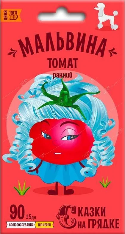 Прекрасная Мальвина не нуждается в представлении. Ее любят все животные и птицы, а пес Артемон преданно защищает от любых неприятелей. Голубоглазая куколка Мальвина – воплощение совершенства, нежная и требовательная. Идеально гладкие, плотные, округлые, с кожицей малинового цвета и нежной мякотью томаты Мальвина займут достойное место на любой грядке. Их выращивают рассадным способом и только через 50-60 дней пересаживают в открытый грунт.