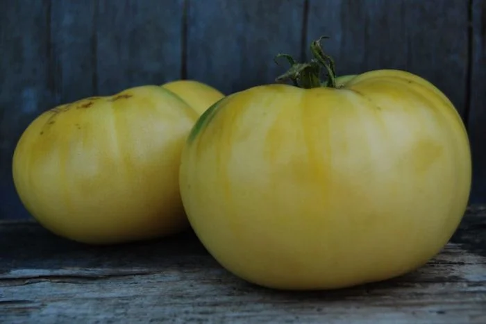 Позднеспелый (118-122 дня) сорт салатного назначения для теплиц и пленочных укрытий. Растение индетерминантное, высотой 1,5-1,7 м.Требует формирования и подвязки. Плоды округлые и плоскоокруглые, желтовато-кремовые, массой 100-120 г, отличного сочного и сладкого вкуса. Ценность сорта: устойчивость к основным заболеваниям, плодоношение до поздней осени, высокие вкусовые качества. Используется в диетическом питании для больных с аллергическими заболеваниями. Рекомендуется для употребления в свежем виде и приготовления соков.