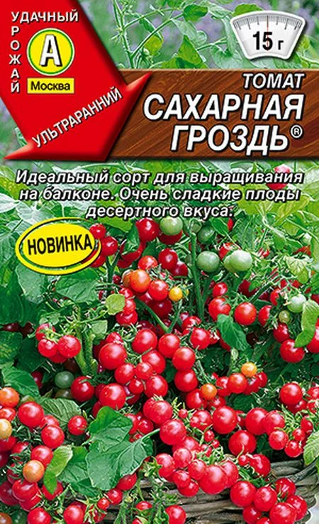 Ультраранний (от всходов до созревания первых плодов – 85-95 дней) сорт для выращивания на балконе и в открытом грунте.Растения детерминантные, высотой до 50 см, не требуют формирования.Ярко-красные плоды, массой 10-15 г долго остаются на кисти, не опадая и не растрескиваясь при созревании.Куст во время плодоношения буквально усыпан аппетитными помидорчиками. Плоды этого сорта отличаются необычайно сладким десертным вкусом и привлекательным внешним видом.Растения способны плодоносить, не теряя декоративности, в течение всего периода вегетации. Сорт устойчив к вирусу табачной мозаики и фузариозу.Сеянцы пикируют в фазе одного настоящего лис та. Обязательным является удаление старых нижних листьев.Сорт отзывчив на качество ухода.