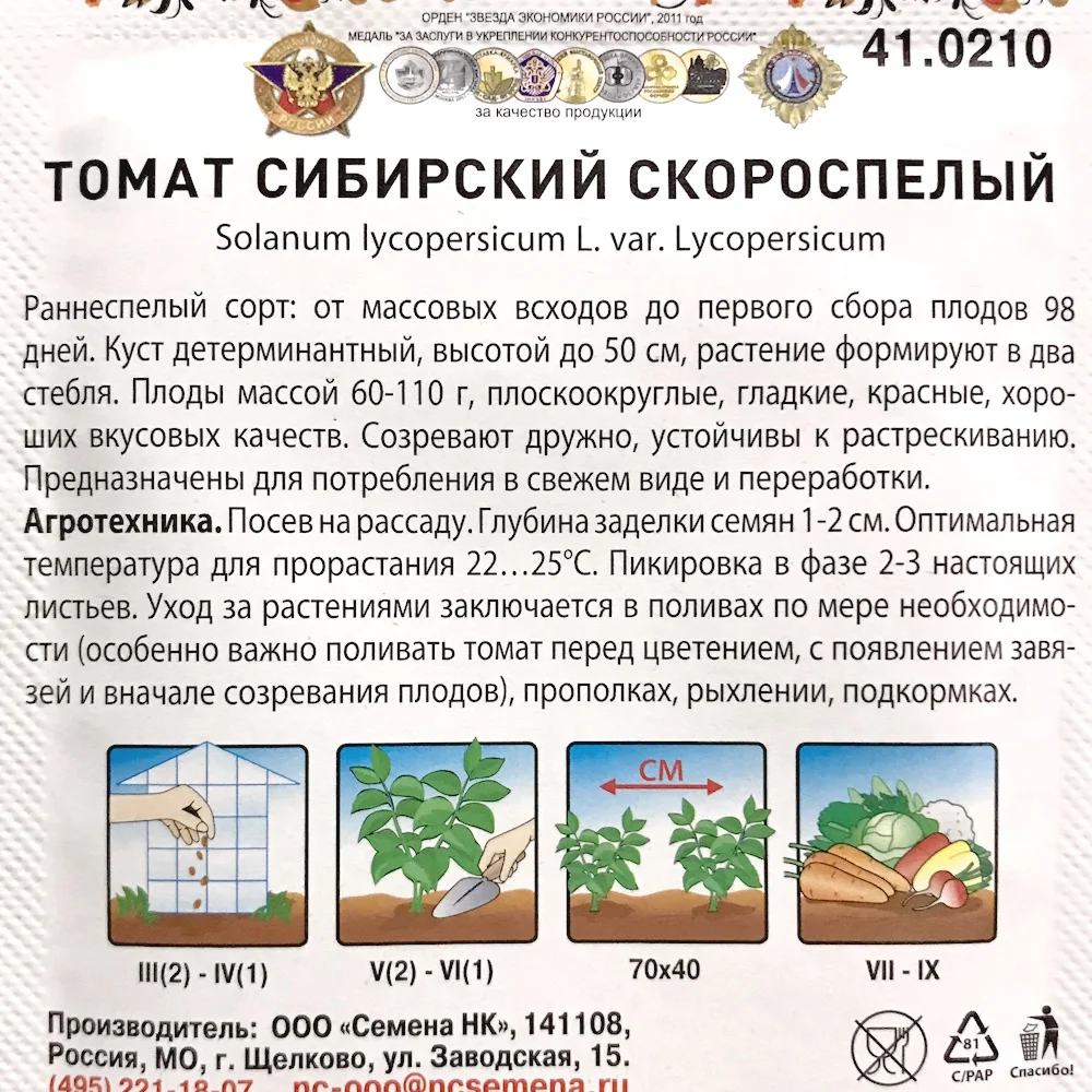 Вид товара: Пакетированные семена