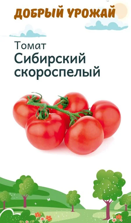 Несмотря на то что сорт давно известен огородникам, имеет солидный возраст, проверен временем, он отличается такой надежностью, что не уступает выведенным в последние годы гибридам томатов, успешно конкурируя с ними. Его высаживают как опытные, так и начинающие огородники. Кусты небольшие, компактные, с крепким стеблем, выдерживающим плоды без опоры. Растение требует небольшого ухода, не нуждается в пасынковании и подвязывании, не поражается фитофторой, холодостойкое, подходит для районов с коротким, прохладным летом.Сибирский скороспелый – детерминантный низкорослый томат, созревающий на 100-110 сутки после высадки. В открытом грунте кусты вырастают до 45-50 см, под пленочным укрытием достигают 60-80 см в высоту. У кустов формируется мощный стебель, который не нуждается в опоре.Плоды завязываются хорошо, растут дружно.На одной веточке томата вырастает 3-5 красивых, ровных плодов округлой формы среднего размера ярко-красного цвета массой от 60 до 120 г с плотной кожицей. Созревают помидоры дружно, рано, капризы погоды этому не мешают. Они почти не поражаются фитофторой, хорошо хранятся. Плотная шкурка не трескается, не позволяет плодам портиться, поэтому они имеют хороший товарный вид, легко переносят транспортировку. Красиво выглядят, когда краснеют, созревая прямо на ветках.Помидоры, растущие в открытом грунте, вкуснее, чем созревающие в теплице. Они спеют дружнее, отличаются более крупными размерами, особым ароматом и сочностью, более насыщенной окраской.Хотя сорт считается салатным, плоды подходят для консервирования, заготовок на зиму. Томаты не лопаются в горячей воде, не меняют цвет, небольшого размера, ровные, хороши для засолки и маринования. Мякоть плотная, сочная, с небольшим количеством семян, приятным, кисло-сладким вкусом. Содержание сахара среднее 2,5-3%.Сорт используется для приготовления сока, томатной пасты, кетчупа, соусов и множества закусок.
