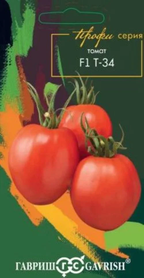 Элитные семена томата Т-34 для увлеченных опытных садоводов. Гибрид порадует одновременным наливом выровненных по форме гладких сливовидных плодов. Скороспелый, индетерминантный, от всходов до созревания 105-108 дней. Рекомендован для выращивания в пленочных теплицах. В незрелом состоянии плоды с темно-зеленым пятном у основания, при созревании окраска ярко-красная. Средняя масса 120-140 г. Кисть простая, с 7-8 плодами, однородными по форме и размеру. Сочные томаты подходят для любой домашней кулинарии, идеальны для цельноплодного консервирования. Посев на рассаду в начале–середине марта. Пикировка рассады в фазе первого настоящего листа. Формируют растение в один стебель, удаляя все «пасынки». Схема посадки 40х60 см. Гибрид устойчив к ВТМ, фузариозу, вертициллезу и нематоде. Семена сохраняют всхожесть в течение 10 лет при оптимальных условиях хранения. Рекомендуется увеличить норму высева по окончании срока годности.