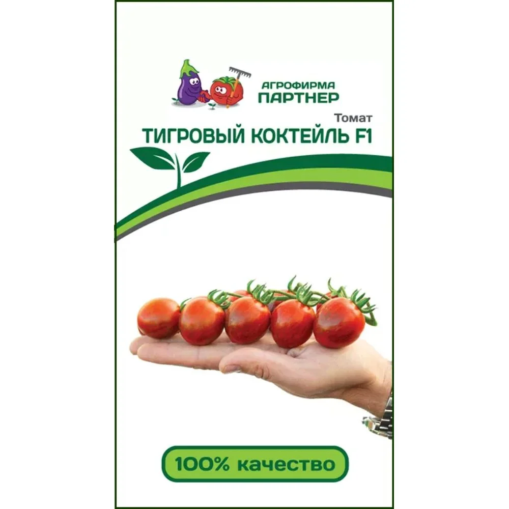 Ультраранний индетерминантный коктейльный гибрид томата с невероятно яркой тигровой раскраской плодов. В плодоношение вступает на 80-85 день после всходов. Растение мощное, с укороченными междоузлиями. Первое соцветие закладывается над 6-7 листом, последующие через 2-3 листа. В простой кисти формируется 8-10 округлых плодов массой по 35-40 г. Томаты имеют красно-коричневую окраску с темно-зелеными полосами. Плоды невероятно вкусные, сладкие, с повышенным содержанием сахаров и ликопина. Плоды идеальны для свежего потребления, консервирования, заморозки и вяления. Томаты очень плотные, лежкость и транспортабельность отличные. Гибрид подходит для снятия урожая целыми кистями. Рекомендуется умеренный полив во время созревания плодов. Гибрид устойчив к вирусу томатной мозаики,  фузариозному и вертициллёзному увяданию, вирусу скручивания листьев. Плотность посадки 3-4 растения/м². Рекомендуем формировать растения в 1-2 стебля. Урожайность в защищенном грунте до 18,0 кг/м², в открытом грунте – свыше 12,0 кг/м².