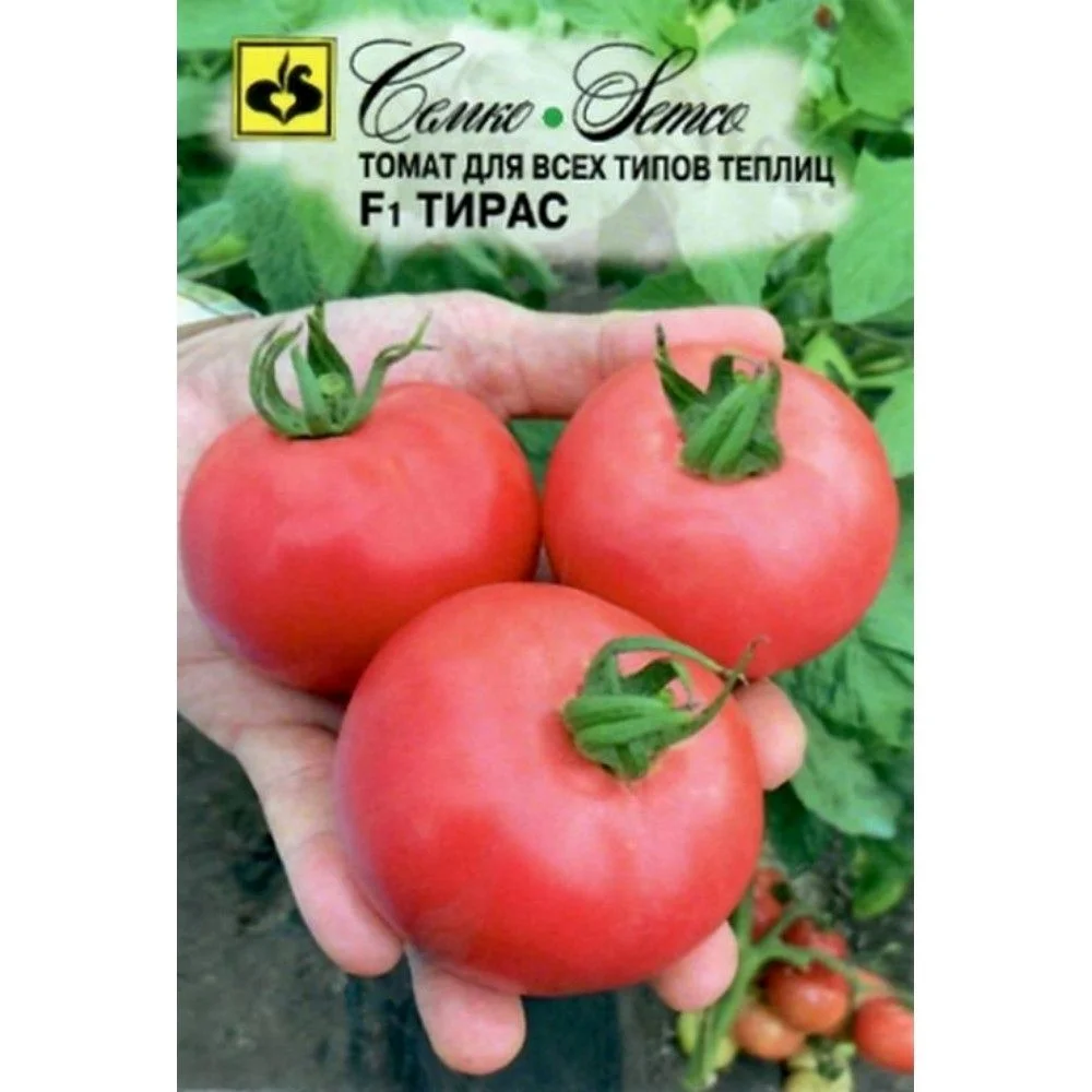 Гибрид раннеспелый, индетерминантный. От всходов до созревания 100-105 дней. Растение высокорослое с укороченными междоузлиями, среднеоблиственное. Первое соцветие закладывается над 7-9 листом. В кисти 5-6 плодов. Плоды плоскоокруглые, гладкие, насыщенно-розовой окраски, с длинными раскрытыми чашелистиками, массой 250-300г, устойчивы к  растрескиванию, транспортабельные. Отличается хорошей завязываемостью плодов, высокой товарностью. Вкусовые качества отличные. Томат Тирас F1 устойчив к вирусу бронзовости томата (TSWV), вирусу томатной мозаики (ToMV), кладоспориозу (Ff), фузариозу (Fol 1-2), а также и  к галловым нематодам (Mi, Ma ). Рекомендуется для выращивания в плёночных теплицах. Схема посадки 70х40 см. Урожайность свыше 30 кг/м2.
