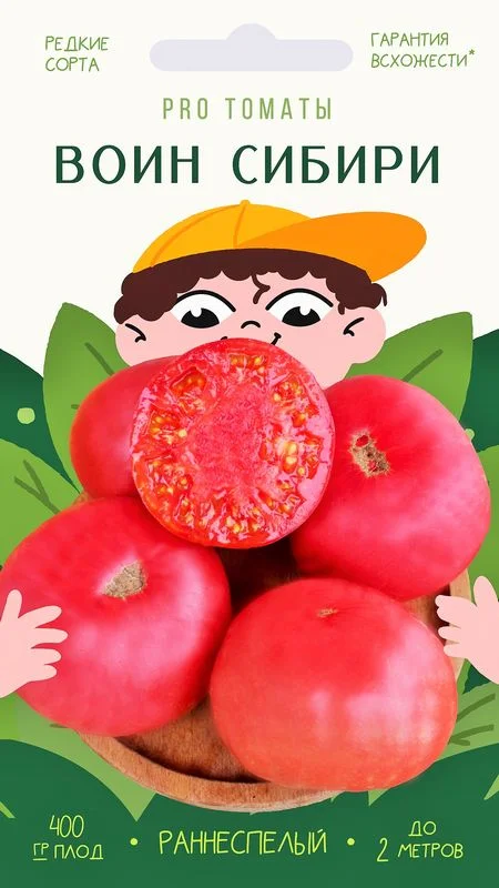 Высокоурожайный сорт сибирской селекции хорошо переносит понижение температур в течение дня и ночи, поэтому подходит для возделывания даже в северных широтах. Дает дружный урожай из крупных сахарных плодов! ""Воин Сибири"" велик, в первую очередь, своей урожайностью: сбор может достигать 10-18 кг с 1 куста. Чтобы добиться такого результата, нужно соблюдать все тонкости агротехники томатов. Сорт рекомендован для выращивания во всех регионах России, одинаково хорошо растет и в теплицах, и в ОГ. Плотная кожица не склонна к растрескиванию. Даже в сложных погодных условиях дачникам удается сохранить весь урожай! Мякоть малинового цвета, мясистая, сочная и нежная. Для употребления в свежем виде, в салатах и закусках, а также для сока, кетчупа, томатной пасты и т.п. "