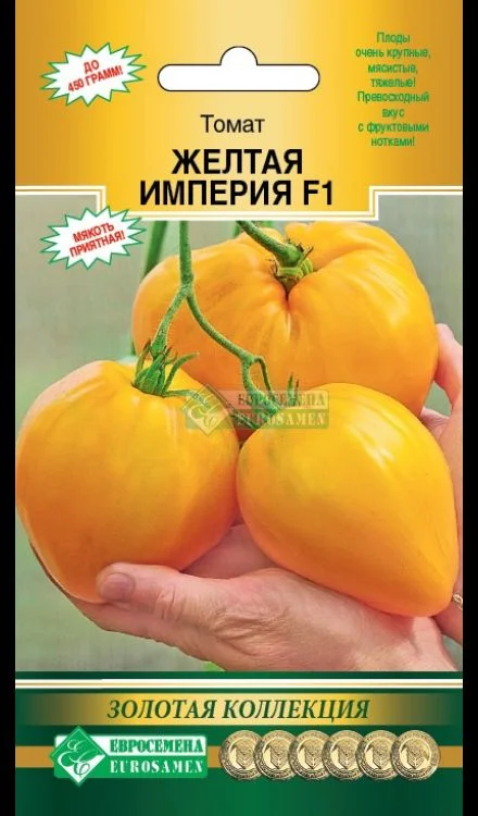 Помидоры вкусны и полезны! «Желтая Империя»- раннеспелый, индетерминантный гибрид (100 дней), кисти простые с 5-7 плодами. Плоды очень крупные, мясистые, тяжелые, поэтому соплодия необходимо надежно фиксировать. Своевременный сбор созревших плодов позволяет получать урожай до поздней осени, хорошо переносит перепады температур.