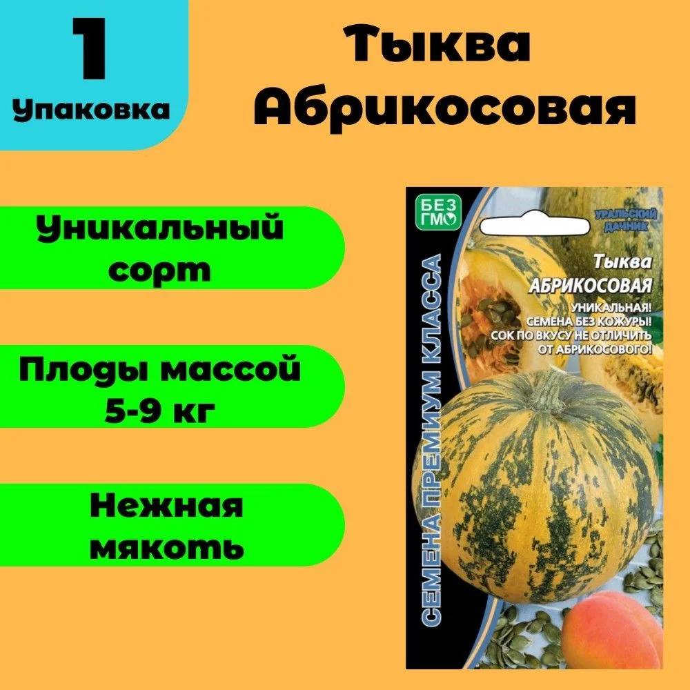 Уникальный среднеранний сорт. Плод округлоцилиндрический, слегка ребристый. Зрелый плод желтый с широкими темно-зелеными, пятнистыми полосами. Кора тонкая, твердая. Мякоть светло-желтая, слабоволокни­стая. Семена без твердой оболочки.Предназначен для употребления в сыром виде, в кулинарии и получения семенной продукции. Отличительные особенности данного сорта в том, что именно этот сорт тыквы использовали в СССР для получения «Абрикосового сока» в знаменитых трёхлитровых банках. Для этого варили курагу, делали из неё пюре и смешивали с соком этой тыквы! За счёт цвета мякоти и большого содержания сахаров получается оранжевый, необыкновенно сладкий, а главное полезный сок!Выращивается рассадным способом и прямым посевом в грунт. Посев на рассаду в марте-апреле, высадка в грунт на стадии 3-4 настоящих листьев, когда минует угроза заморозков и почва прогреется до 14 градусов. Посев непосредственно в грунт в конце мая – июне по схеме 60х60 см. Первую подкормку растений производят после 10 дней от высадки рассады, а вторую–на фазе образования плетей.