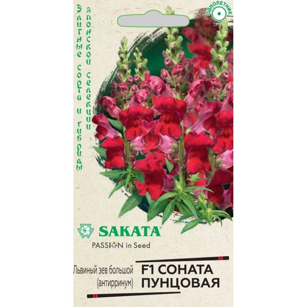 Интересные цветы добавляют уюта, прелести и моментально оживляют даже самый унылый и невзрачный участок в саду. Львиный зев — стильная культура, имеющая невероятно изысканный внешний вид, расцветку и форму. Гибрид F1 Соната пунцовая раскрасит сочными, красками любую, даже самую скучную территорию, создавая нереальную красоту с конца июня до поздних заморозков и распространяя вокруг восхитительный аромат. На пирамидальных, хорошо ветвящихся кустиках располагаются опушенные листья ланцетовидной формы и большое количество пышных соцветий. Антирринум холодостоек, светолюбив, к почвам нетребователен, в засушливый период нуждается в поливе. Выращивают рассадным способом. Для получения дружных всходов семена необходимо стратифицировать при температуре +10оС. Посев проводят с начала марта до середины апреля, поверхностно, не заделывая, в ящики с субстратом и ставят на свет. Всходы появляются через 8-12 дней. Рассаду высаживают во второй половине мая с расстоянием между растениями 20 см. Очаровательно будет смотреться не только в больших контейнерах, но и в маленьких горшочках.