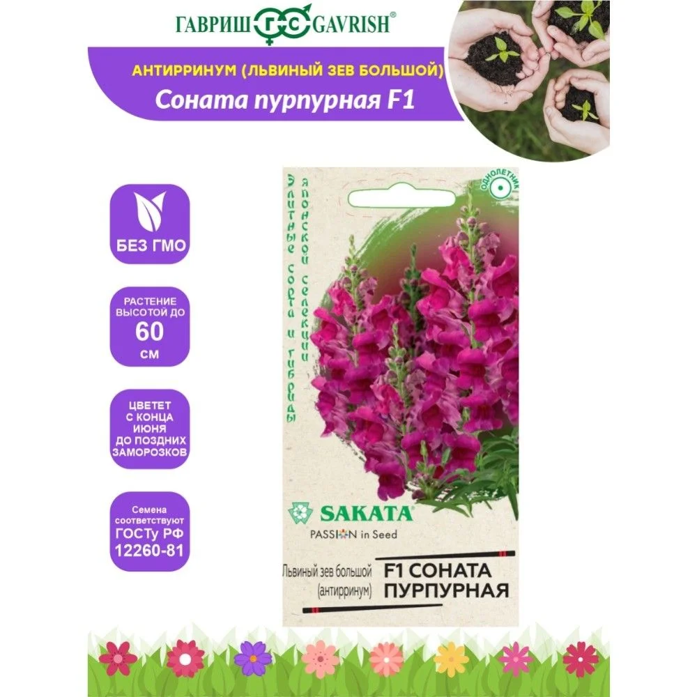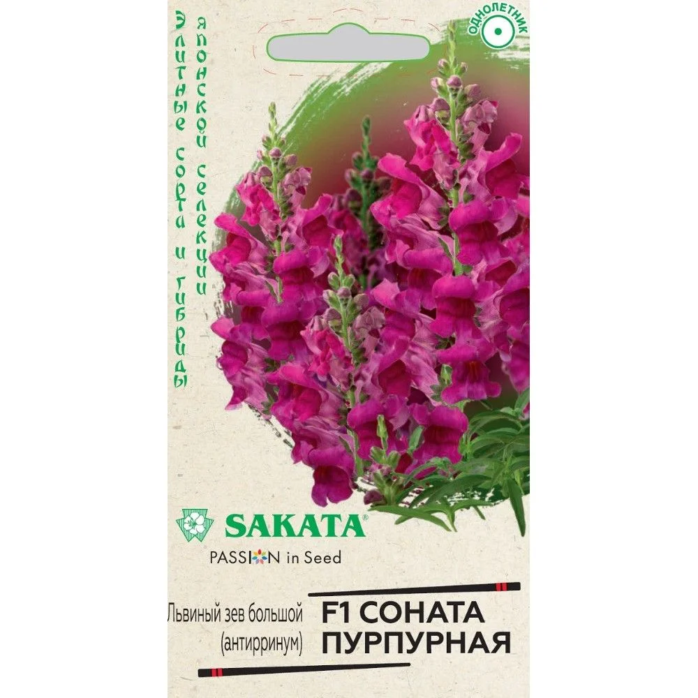 Интересные цветы добавляют уюта, прелести и моментально оживляют даже самый унылый и невзрачный участок в саду. Львиный зев — стильная культура, имеющая невероятно изысканный внешний вид, расцветку и форму. Гибрид F1 Соната пурпурная раскрасит сочными, красками любую, даже самую скучную территорию, создавая нереальную красоту с конца июня до поздних заморозков и распространяя вокруг восхитительный аромат. На пирамидальных, хорошо ветвящихся кустиках располагаются опушенные листья ланцетовидной формы и большое количество пышных соцветий. Антирринум холодостоек, светолюбив, к почвам нетребователен, в засушливый период нуждается в поливе. Выращивают рассадным способом. Для получения дружных всходов семена необходимо стратифицировать при температуре +10оС. Посев проводят с начала марта до середины апреля, поверхностно, не заделывая, в ящики с субстратом и ставят на свет. Всходы появляются через 8-12 дней. Рассаду высаживают во второй половине мая с расстоянием между растениями 20 см. Очаровательно будет смотреться не только в больших контейнерах, но и в маленьких горшочках.