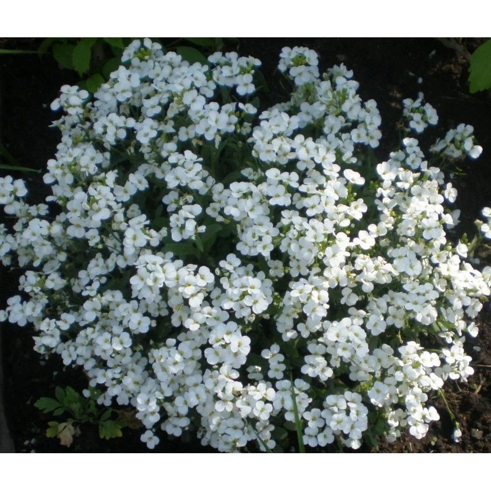 Арабис альпийский Снежная Лапландия, многолетник. Настоящая находка для любителей альпийских горок. Неприхотливое растение со стелющимися, ветвистыми стеблями высотой 25-30 см. Цветки белые, диаметром около 1,5 см, собраны в кисти. Листва серебристо-белая с зеленым оттенком. Сильно разрастается, образуя пышный ковер. Особенности выращивания: высевают с марта по июнь, в ящики с легким песчаным грунтом, слегка вдавливают в почву, не присыпая землей. посадочную емкость накрывают стеклом и ставят в освещенное место. При температуре почвы +20°C всходы появляются через 14-20 дней. Сеянцы содержат при умеренной температуре. В открытый грунт рассаду высаживают в конце мая, расстояние при посадке 20-25 см. Можно сеять непосредственно на место в мае. После цветения растение обрезают на высоту 4-5 см. Через 2-3 недели побеги отрастают и кустики приобретают пышность. Предпочитает солнечные участки, но выносит и полутень, почвы хорошо обработанные, рыхлые. Применение: очень эффектно смотрится по соседству с тюльпанами, ирисами, алиссумом и другими луковичными культурами раннего цветения. используют для создания живописного фона в розарии, украшают любые каменистые стенки и конструкции.