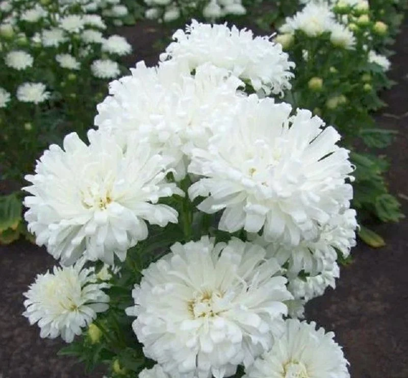 Изумительно пышный букет из одного растения! Высокий, компактный, колонновидный куст, диаметром 20-25 см, станет украшением любого сада. На растении одновременно цветёт до 24 белоснежных, махровых соцветий. Цветение обильное и продолжительное — до 40 дней. Используются для получения срезки и оформления участка.