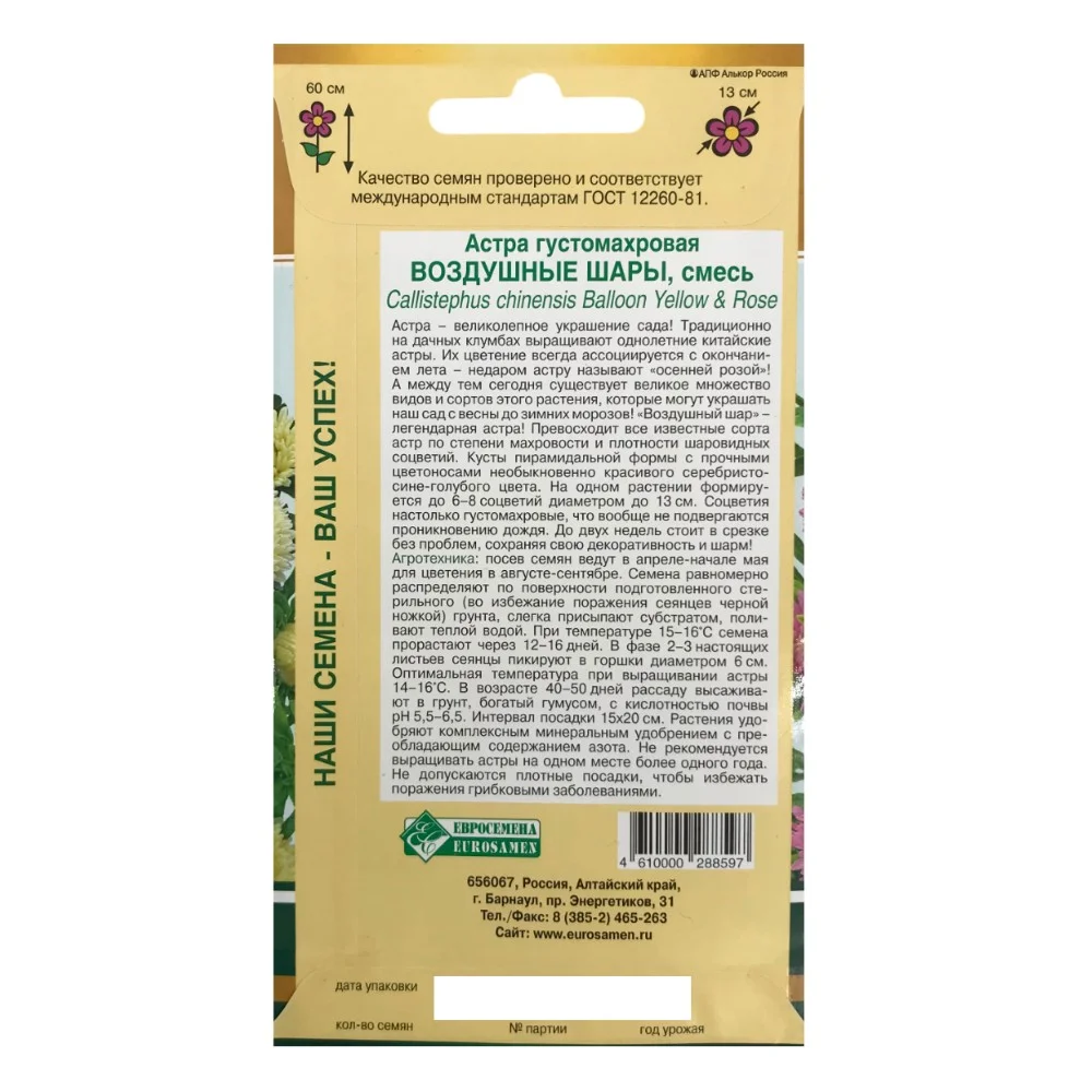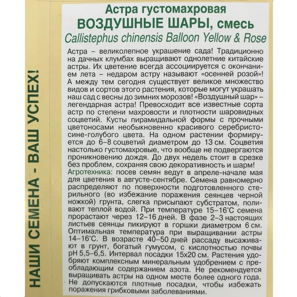 Легендарная астра, великолепное украшение сада. Цветение астры всегда ассоциируется с окончанием лета - недаром астру называют "осенней розой". Смесь астр Воздушные сады превосходит все известные сорта по степени махровости и плотности шаровидных соцветий. Кусты пирамидальной формы с прочными цветоносами необыкновенно красивого серебристо-сине-голубого цвета.Соцветия настолько густомахровые, что вообще не подвергаются проникновению дождя.
