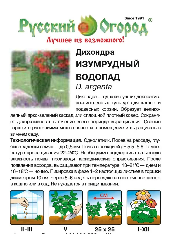 Висячие сады Семирамиды! Очень декоративная, изумрудная или серебристая листва дихондры, напоминающая монетки, ниспадает из подвесных горшков сплошным потоком до 1,8 м! Растение прекрасно переносит засуху,  что немаловажно для быстро пересыхающего ограниченного объема земли в горшках.