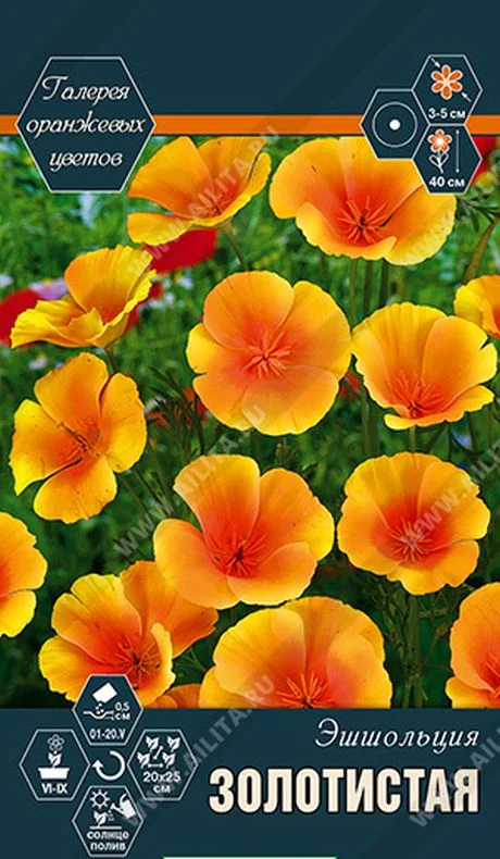 Порция хорошего настроения с оранжевыми цветами! В настоящее время модно создавать цветники, где присутствуют эффектные цветы одной окраски, например, ярко-оранжевые. Они наполняют клумбы праздничной атмосферой и создают контрастные композиции с другими растениями. Считается, если вам нравится оранжевый цвет, вас обязательно ждет успех!Очаровательный летник с апельсиновыми цветками. Эшшольция выглядит хрупкой, нежной и капризной, но по праву считается культурой для ленивых. Она устойчива к засухе, болезням и вредителям. Не утрачивает пышного цветения даже на бедных почвах. Растения высотой до 40 см, с зеленовато сизыми ажурными листьями. Цветки изящные, яркие и крупные, 3-5 см. Закрывают лепестки в непогоду. Сорт используется для украшения разнообразных цветников, альпинариев и мавританского газона.Эшшольция не выносит избытка влаги и органических удобрений. Предпочитает легкие, хорошо дренированные, некислые почвы. В фазе одного-двух настоящих листьев всходы прореживают. Возможен подзимний посев.