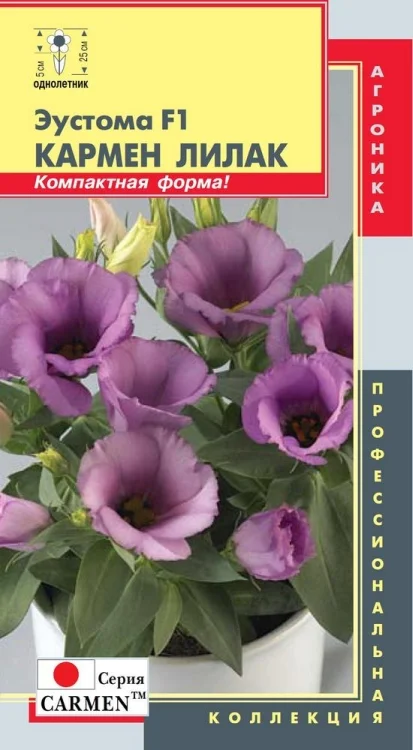 Посев: проводят в декабре-мае в зависимости от того – когда вы хотите получить цветущее растение. Субстрат для посева должен быть стерильным, с невысоким содержанием удобрений. Перед посевом, субстрат хорошо проливают. ВНИМАНИЕ! Не допускайте пересыхания субстрата пока не растворилось драже – это приведет к цементированию семени. Сеют поверхностно: семена не присыпают землей, а лишь слегка придавливают к грунту. Ящик с посевами накрывают стеклом. Необходимо обеспечить дополнительное освещение - примерно 40 Вт/м.кв. При температуре 16-19°С всходы появятся через 20-25 дней. Высадку в горшок, окончательную емкость для выращивания, проводят в фазе 4-х настоящих листьев через 12-13 недель от посева. В 9-12см горшок высаживают по 4 сеянца. В дальнейшем температуру желательно поддерживать на уровне 22-24°С – днем, и 18-20°С - ночью. Плотность расстановки горшков 30-40 горшков/м2, в зависимости от размера горшка. Эустома предпочитает субстрат с высоким содержанием гумуса, возможно в смеси с перлитом. Лучшее значение рН-6-6,5.