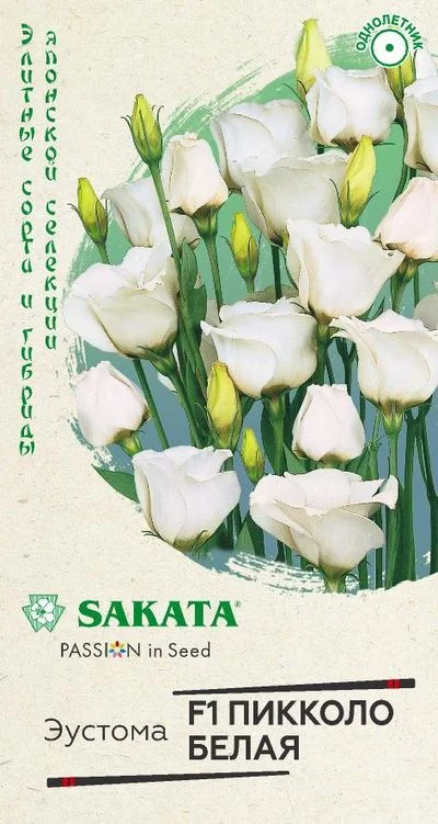 Нежное однолетнее растение из семейства Горечавковые.Романтичная серия «Пикколо» создавалась японскими селекционерами для срезки. Небольшой аккуратный простой цветок белого цвета на длинном (80-100 см) прочном стебле смотрится в букетах трогательно и изящно.Предпочитает солнечные места, окультуренную почву, регулярные поливы и опрыскивания. Для получения цветущих растений в июле-августе посевы проводят в конце февраля-начале марта. Семена мелкие, их не присыпают, оставляя на поверхности субстрата, увлажняют из распылителя и накрывают стеклом. Всходы появляются через 10-15 дней при температуре +20-21оС. Необходим свет. Сеянцы пикируют в стадии 2-3-х настоящих листьев в отдельные горшки. В грунт высаживают, когда минует угроза заморозков. Используют для украшения клумб, рабаток, бордюров и срезки.