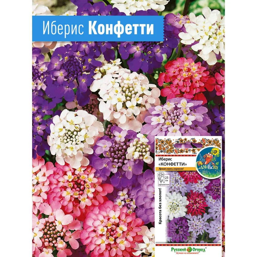 Иберис Конфетти – самая полная смесь, состоящая из разных цветовых сочетаний. Белые, розовые, лиловые и пурпурные соцветия, источающие сладостны аромат, хорошо будут смотреться как в цветниках, так и на альпийских горках или вазонах. Иберис создан, именно для тех, кому не хочется много ухаживать за цветами, зато хочется как можно дольше любоваться разноцветным ландшафтным дизайном садовых клумб. Высота ибериса не превышает 35 см, а значит это будет отличная база, как для нового цветника, так и для того, чтобы вдохнуть новую жизнь в старый. Хочется также отметить, что растение очень редко болеет и очень быстро разрастается. Если в ваши планы не входит увеличение площади ибериса – посадите его в заранее заготовленный горшок, который не позволит корням разрастаться.