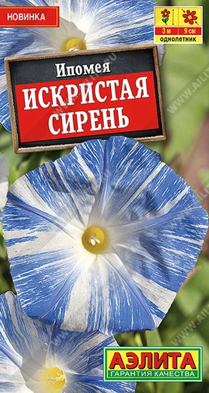 Однолетняя красавица-лиана с оригинальными полосатыми цветками. Один из лучших сортов для вертикального озеленения. Крепкие растения способны взобраться вверх по любой опоре и соткать удивительный живой ковер из сердцевидных листьев и крупных цветков 7-9 см. Высота побегов достигает 3 м, они быстро развиваются, образуя множество бутонов к разгару лета. Выбирая подходящее для ипомеи место, следует отдать предпочтение солнечным и теплым уголкам сада. Ипомея предпочитает дренированные почвы без избытка органики. Посев на рассаду предварительно замоченными семенами, гнездами по 2-3 шт., на глубину 1-2 см. Растения высаживают в грунт с комом почвы. В южных регионах возможен прямой посев в мае.