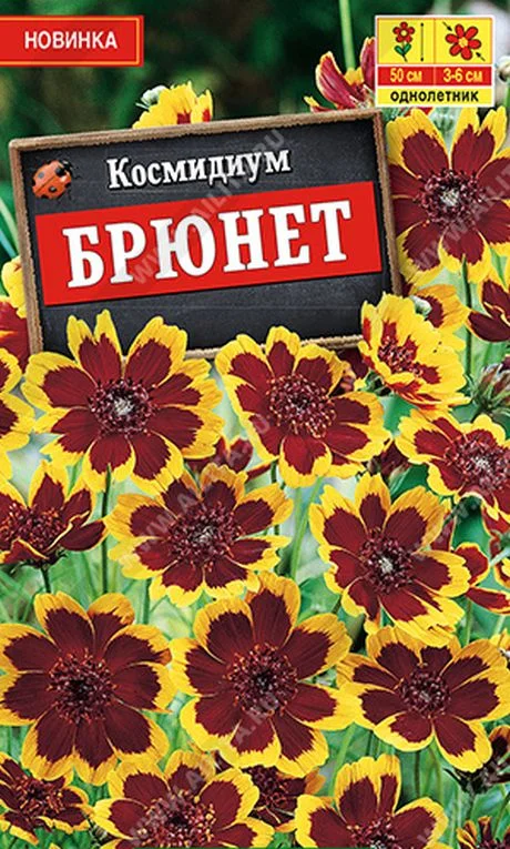 Красивоцветущий однолетник, образующий пышный компактный кустик высотой до 50 см. На каждом растении образуется множество красно коричневых с желтой каймой цветов, 3-6 см. Нитевидные листочки придают растению легкость и невесомость. Отлично подходит для рабаток и контейнеров. Космидиум пригоден для срезки. В вазе долго сохраняет свежесть.