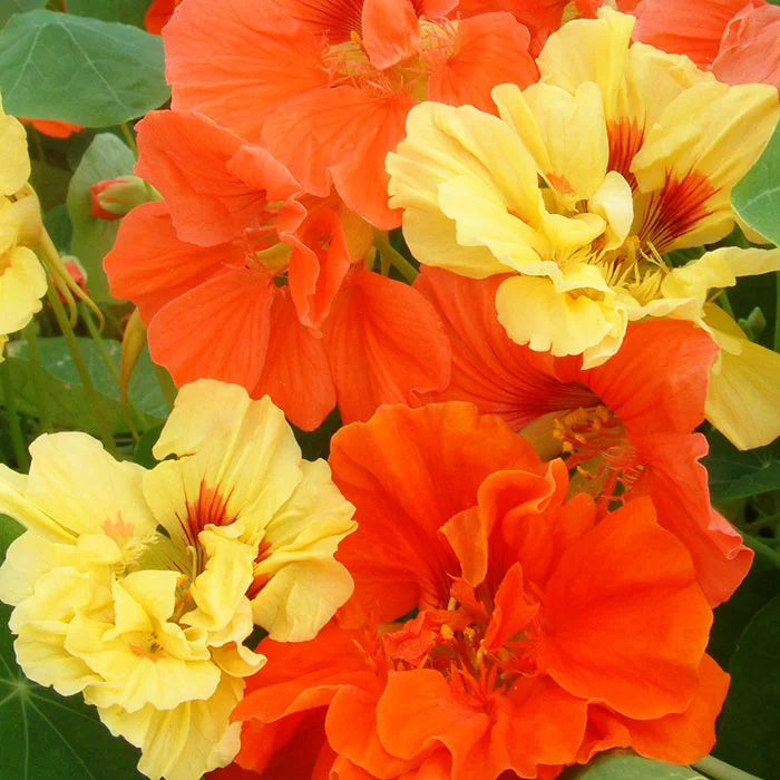 Настурция Махровая – яркий элемент Вашего цветника. Многообразие красок, нежные махровые лепестки, буйство сочности и радостное настроение – все это способна подарить Вам летняя настурция, обрамлённая яркой зеленью.