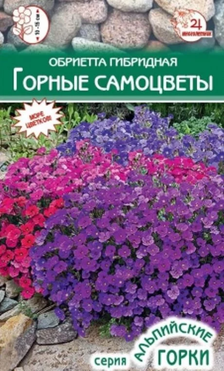 Посадка обриеты, размножение и уход за ней - приятное и интересное занятие. Второе название обриеты – аубреция.Цветки у аубреции некрупные, но их численность впечатляет.Цветение происходит в два этапа – с конца мая около полутора месяца и в сентябре до самой зимы.Она растет быстро, поэтому ее так любят цветоводы.Высота растения-10-15 см.Посев семян ведут в апреле, в кассеты или горшочки.Рассаживать всходы нет необходимости, их сразу высаживают в открытый грунт в мае, когда минует угроза заморозков ночью.Почву выбирают нейтральную, кислую.Грунт увлажняют и выкладывают по 2-3 семечка в горшок, присыпав песком, опрыскивают распылителем, накрывают целлофаном, периодически открывают для проветривания.Температура в помещении должна быть +18… +21 °C.Как только появятся первые ростки, укрытие снимают, поливают осторожно, чтобы не повредить всходы.Перед высадкой в открытый грунт подкармливают рассаду минеральным и органическим удобрением.Посадка на солнечное место, чем светлее место, тем обильнее она цветет, а цветение приобретает более насыщенный оттенок.Обриета не любит торфяные и насыщенные грунты, на них она будет капризничать, если вообще приживется.