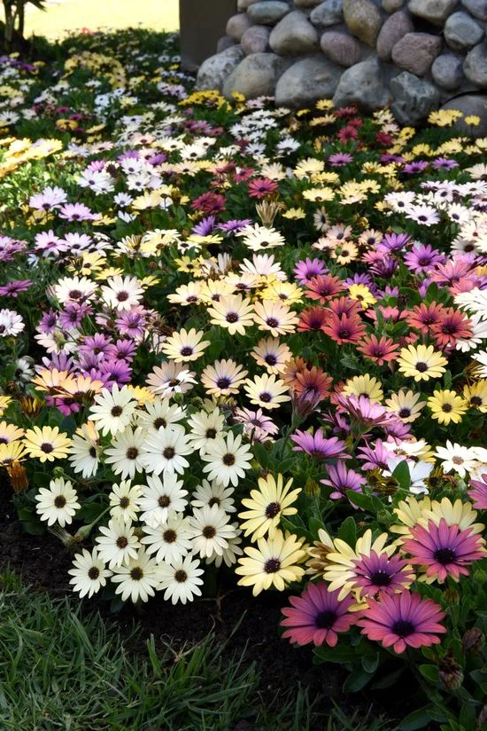 Компактная и обильноцветущая дизайнерская смесь семян, не уступающая или даже превосходящая по легкости и простоте выращивания из черенков. Отличается высочайшей всхожестью, засухоустойчивостью, прекрасно ветвится и обеспечивает прекрасный плотный цветущий шар в горшках и отличные пышные клумбы. Это идеальный вариант для сада, миксбордера; вне конкуренции для выращивания в контейнерах, подвесных корзинах на балконах и террасах. Лепестки не выгорают под яркими лучами солнца и не повреждаются сильными дождями. Пышно облиственные кусты зацветают уже в июне и цветут до устойчивых заморозков. Хорошо подходит для механизированного производства и программ с высокой плотностью. Включает в себя популярные цвета, такие как желтый, фуксия, розово-красный, а также пурпурный, лавандовый, кремовый и белый.Взрослое растение выдерживает даже лёгкие кратковременные заморозки. Такие условия в открытом грунте могут быть обеспечены только в условиях Краснодарского края, Крымского п-ва и отдельных регионов Кавказа. Здесь остеоспермум можно уверенно выращивать как многолетнюю культуру. В остальных регионах его выкапывают осенью, переносят в контейнеры и хранят до весны на балконах, в теплицах и оранжереях, главное, чтобы цветку была обеспечена пониженная температура, или используют как однолетнюю культуру.