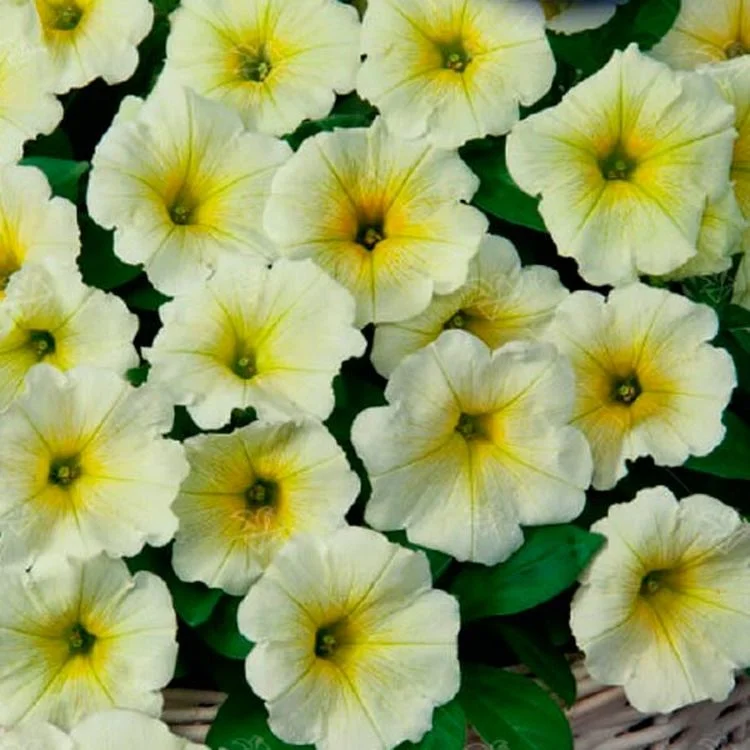 Многоцветковая гибридная петуния серии Джоконда отличается обильным цветением с весны до поздней осени. Растение мощное, прямостоячее, высотой 25-27 см, ширина куста 50-60 см. Цветки одиночные, воронковидные, крупные, диаметром 7-8 см, нежного лимонно-желтого цвета. Петуния свето- и теплолюбива, предпочитает суглинистые и супесчаные водопроницаемые плодородные почвы. Не выносит сырых и кислых почв. При выращивании в контейнерах их объём должен быть достаточно большим, не менее 14-20 см. Необходим регулярный полив и регулярные подкормки полным минеральным удобрением, чтобы растение цвело в течение всего теплого периода и могло показать себя во всей красе. Посев семян на рассаду проводят в конце февраля-марте. Семена слегка вдавливают в почву, не присыпая землей, хорошо увлажняют из распылителя. При попадании влаги на гранулу оболочка должна раствориться. Посевы накрывают стеклом или целлофаном для сохранения постоянной влажности и до полных всходов, ставят в освещенное место. Рассаду высаживают в открытый грунт через 7-9 недель или после окончания весенних заморозков. Идеально подходит для всех типов использования: для горшков, контейнеров, подвесных корзин, для озеленения клумб, бордюров.