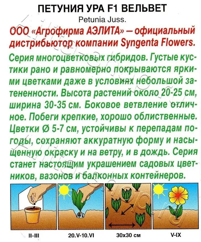 Серия многоцветковых гибридов. Густые кустики рано и равномерно покрываются яркими цветками даже в условиях небольшой затененности. Высота растений около 20-25 см, ширина 30-35 см. Боковое ветвление отличное. Побеги крепкие, хорошо облиственные. Цветки 5-7 см, устойчивы к перепадам погоды, сохраняют аккуратную форму и насыщенную окраску и на ветру, и в дождь. Серия станет настоящим украшением садовых цветников, вазонов и балконных контейнеров. Семена в гранулах! Гранулы располагают на поверхности почвы, не заделывая их, хорошо увлажняют из распылителя. При попадании влаги на гранулу оболочка должна раствориться. Посевы накрывают стеклом для сохранения постоянной влажности до полных всходов. Февральским посевам требуется дополнительная подсветка.