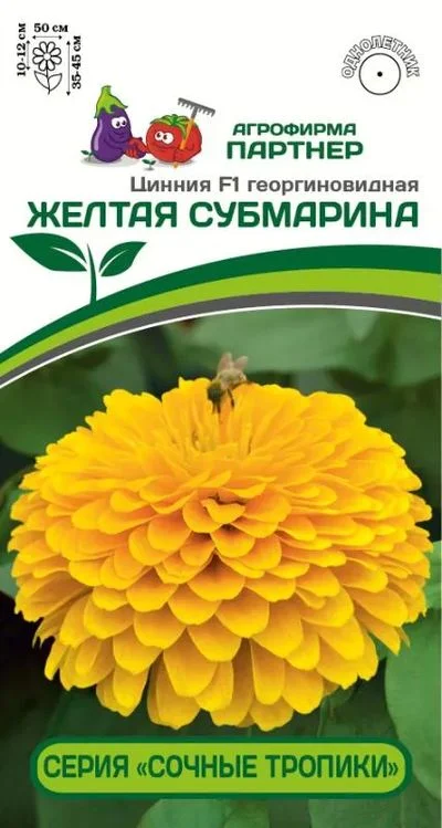 Имя этой мексиканской красотки созвучно с названием легендарного коктейля - «Желтая Субмарина». Солнечно-желтая окраска цветка выглядит «вкусно», «фруктово-сочно», но не ослепительно ярко, приобретая, по мере роспуска, более пастельный оттенок. Очень крупные, до 12 см в диаметре, цветки редко появляются по одному, чаще всего - это целый букет! Одновременно на растении может быть раскрыто более десятка цветков, которые долго держат форму и не выгорают на солнце. Генетически компактные кусты, до 50 см в диаметре, все как на подбор — выравненные, с хорошим ветвлением и устойчивыми цветоносами. Серия «Сочные тропики» отличается ранним, продолжительным цветением, неприхотливостью в уходе, а крепкое здоровье растений позволяет противостоять неблагоприятным погодным условиям и быть высокоустойчивыми к комплексу заболеваний, в том числе и к серой гнили (Botrytis). Это поистине удивительная серия для любого садового интерьера: ландшафтного, балконного или контейнерного декора в любимом патио-дворике. Чтобы цинния полностью раскрыла свой потенциал, рекомендуем объем кашпо 8-10 л на одно растение и схему посадки в грунте – 35х35 см.
