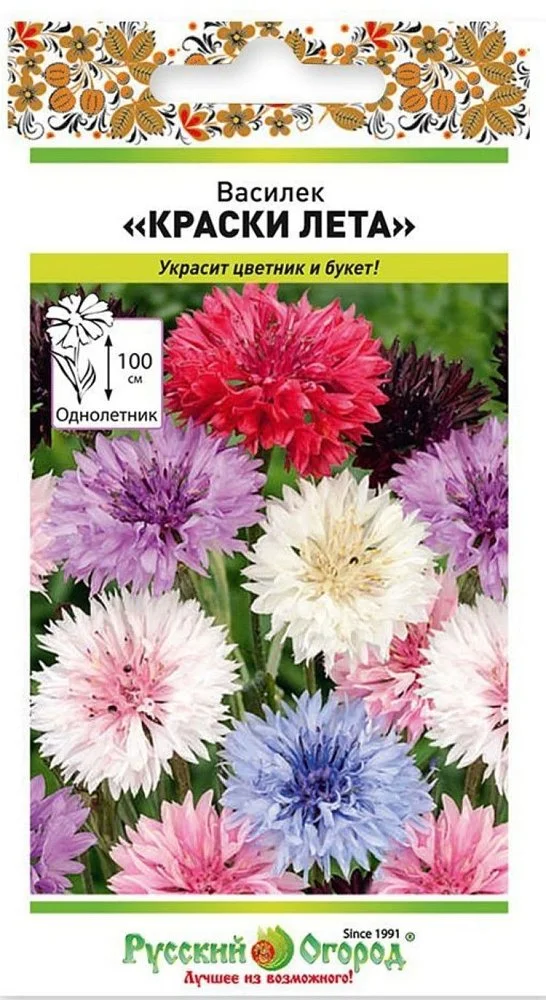 Василек Краски Лета – яркая праздничная смесь всем нам давно знакомых цветов! Без толики сомнения скажем вам, что васильки – лучшие обитатели любого сада. Ведь они настолько неприхотливы, что вы можете за ними совершенно не ухаживать! Они могут цвести без удобрений, им всё равно, в какой тип почвы их посадят, они даже не увядают при летней засухе! Что же может быть лучше и для начинающих, и для опытных садоводов, а также для тех, кто в саду появляется как минимум только в выходные дни?