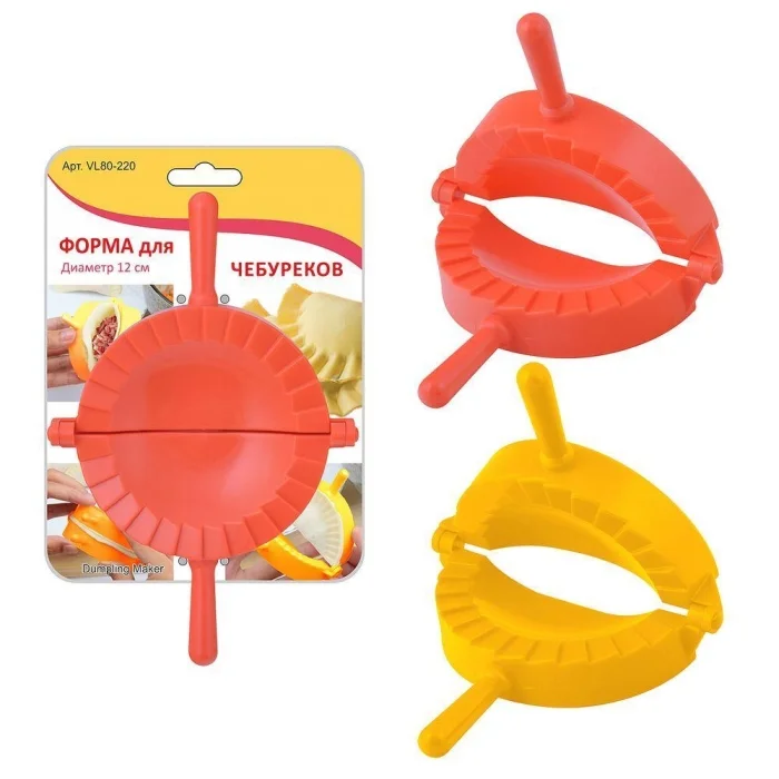 Лепите чебуреки с помощью специальной формы, которая сделает процесс проще и быстрее. Форма для чебуреков — это простое приспособление для изготовления изделий из теста с начинкой. Вырежьте кружочки из теста под размер, уложите их в форму и добавьте начинку. Плотно закройте створки, чтобы края сомкнулись. Чебурек готов, его можно жарить! Не нужно специальных навыков в лепке, с этим приспособлением справится даже новичок. После использования вымойте мягкой губкой с моющими средствами. Изготовлено из пластмассы (полипропилен). Диаметр 12 см.