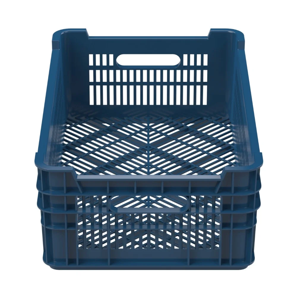 Большое количество утолщённых рёбер на стенках и на дне позволяют штабилировать гружёные ящики стопкой до 7 штук.