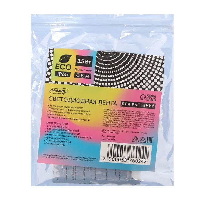 Выбрано:0,5м4,5 ВтДля растенийIP65