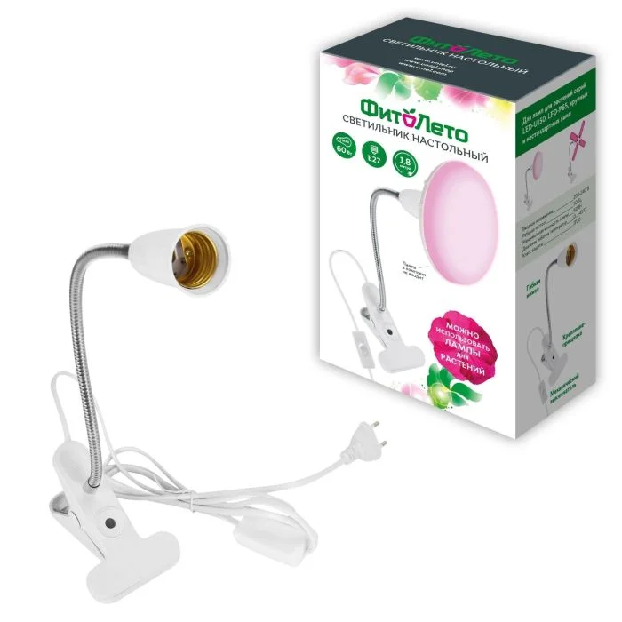 TLI-280 WHITE E27 PLANT Светильник настольный для фитоламп. На прищепке. Цоколь E27. Белый. ТМ ФитоЛето