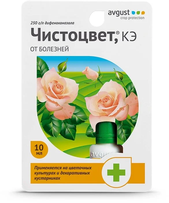 Эффективен в борьбе с мучнистой росой, серой гнилью и пятнистостями. Применяется для защиты не только на розах, но и других цветочно-декоративных культурах. Обладает системным действием и обеспечивает защиту растений до двух недель. Проникает в растения через 2 часа и не смывается дождем.