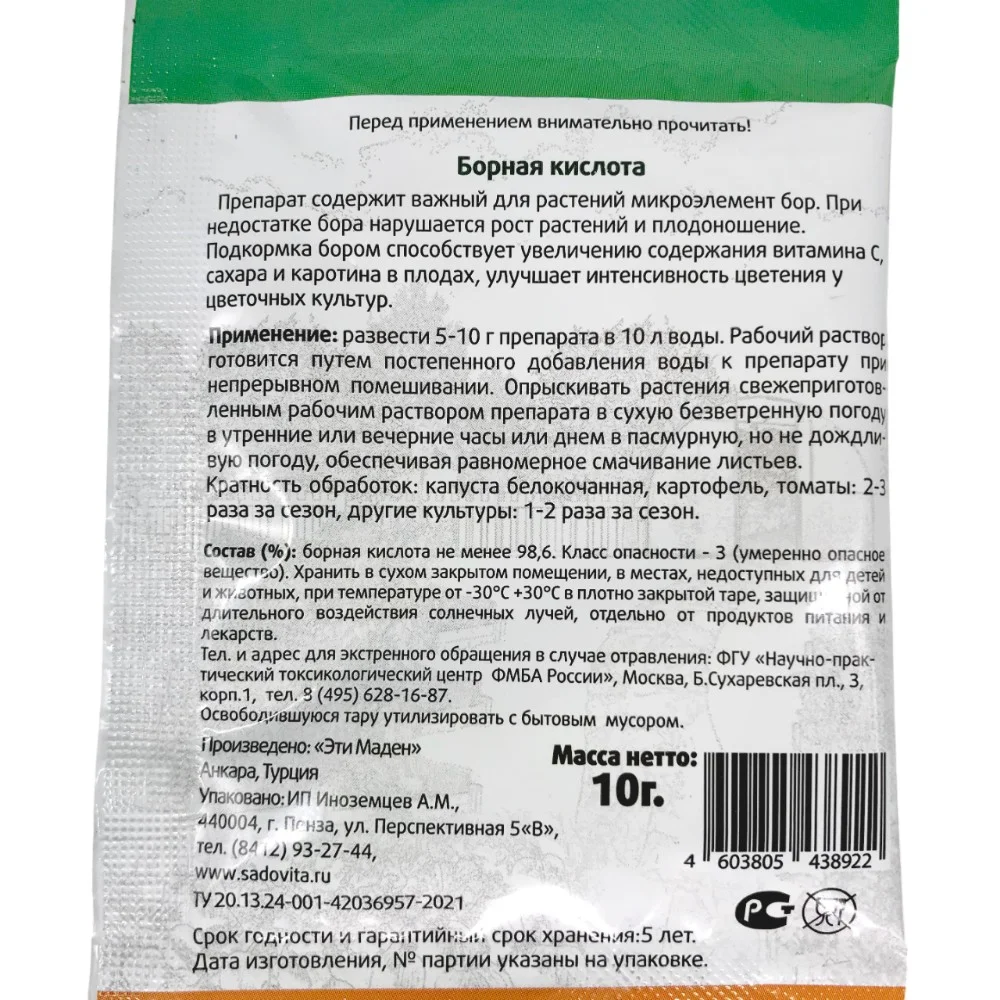 Борную кислоту применяют для замачивания семян, обработки грунта перед посадкой, для полива под корень и опрыскивания по листьям.