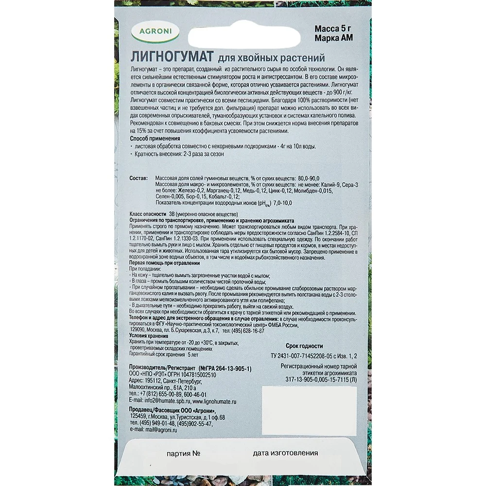 Лигногумат для хвойных растений 5 г