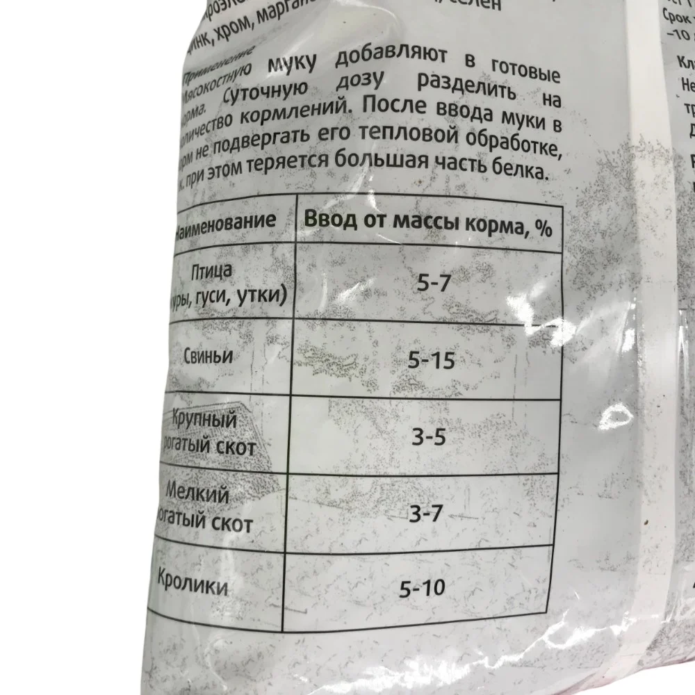 Мясокостную муку добавляют в готовые корма. Суточную дозу разделить на колличество кормлений. После ввода муки в корм не подвергать его тепловой обработке, т.к. при этом теряется большая часть белка.